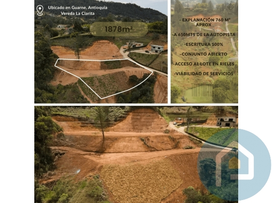 Área 1.878 MTS2, tiene una explanación de 760 mts2, a 3 minutos de la autopista Medellin-Bogota y 10 minutos de aeropuerto.